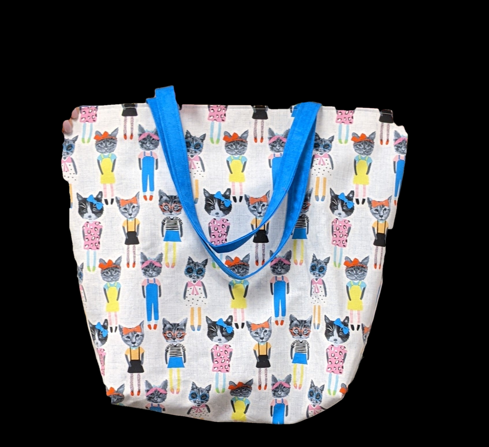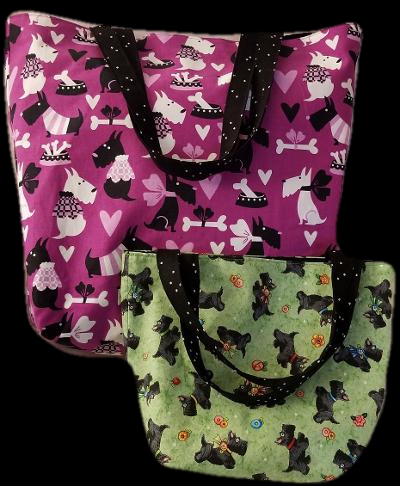 Tote Bags Above are just a few samples of my Tote Bags. All Totes are 100% cotton, lined, custom-made, and come in two sizes. I have hundreds of fabrics available, and will be happy to research special fabric requests.(Slight upcharge if I have to order special fabrics.) $30 Large 15 x 17″$20 Small 9 x 11″ For questions or to place an order please contact me: (513) 561-8687 or (513) 212-1161 (text) • appytrls2u@aol.com